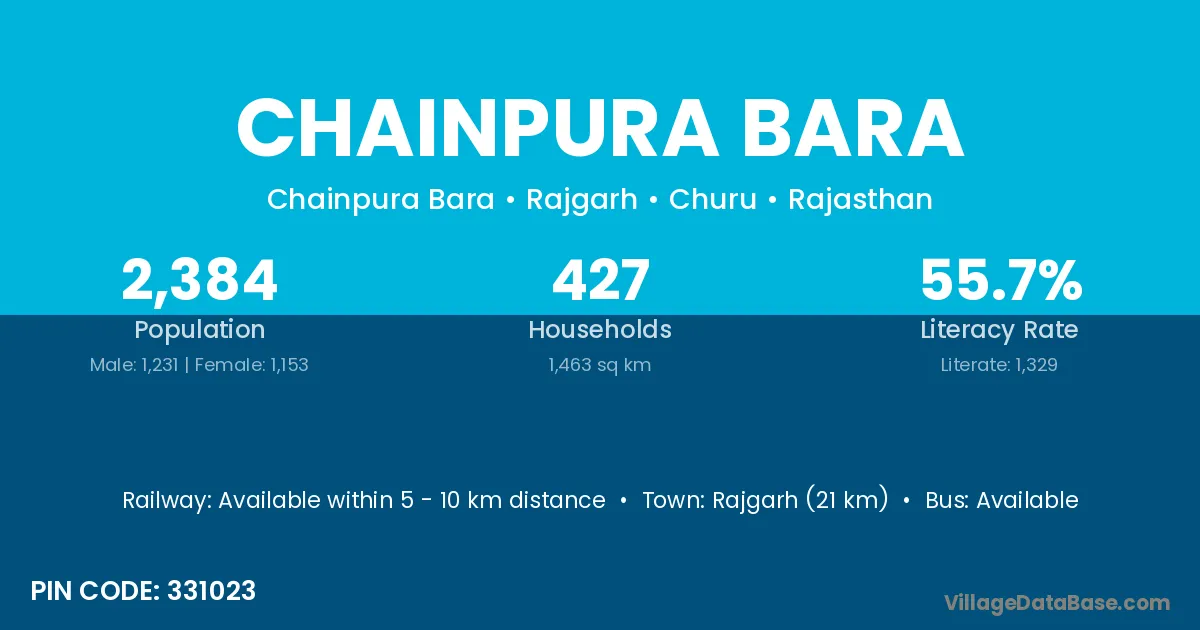 Rajgarh (21 km) is the nearest town to Chainpura Bara village for major economic activities and is located approximately 21 km away.