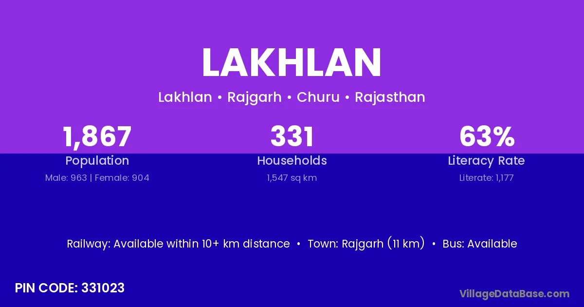 According to Census 2011 information, the village code of Lakhlan village is 331023.