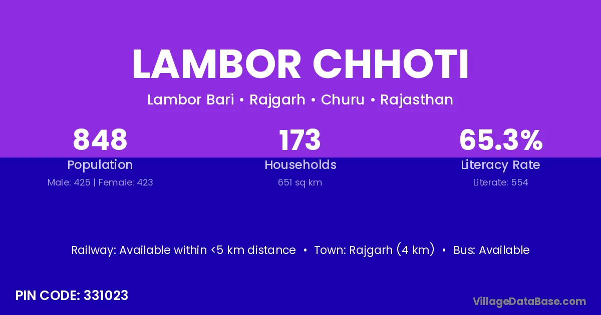 According to Census 2011 information, the village code of Lambor Chhoti village is 331023.