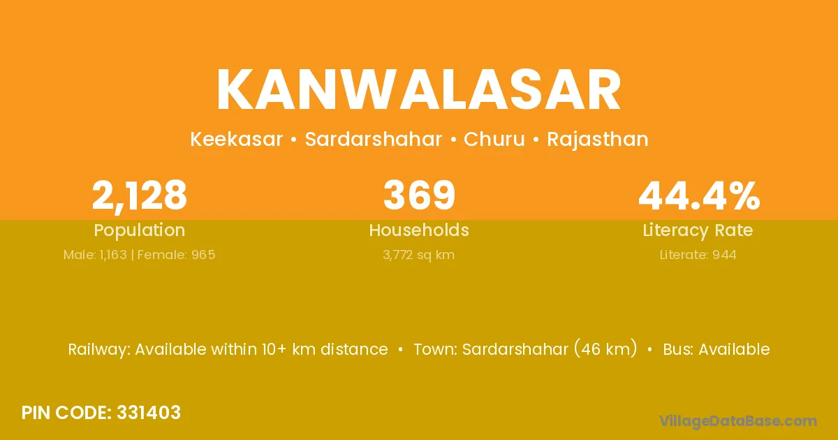 Kanwalasar village has a total population of 2,128 people, of which 1,163 are males and 965 are females.