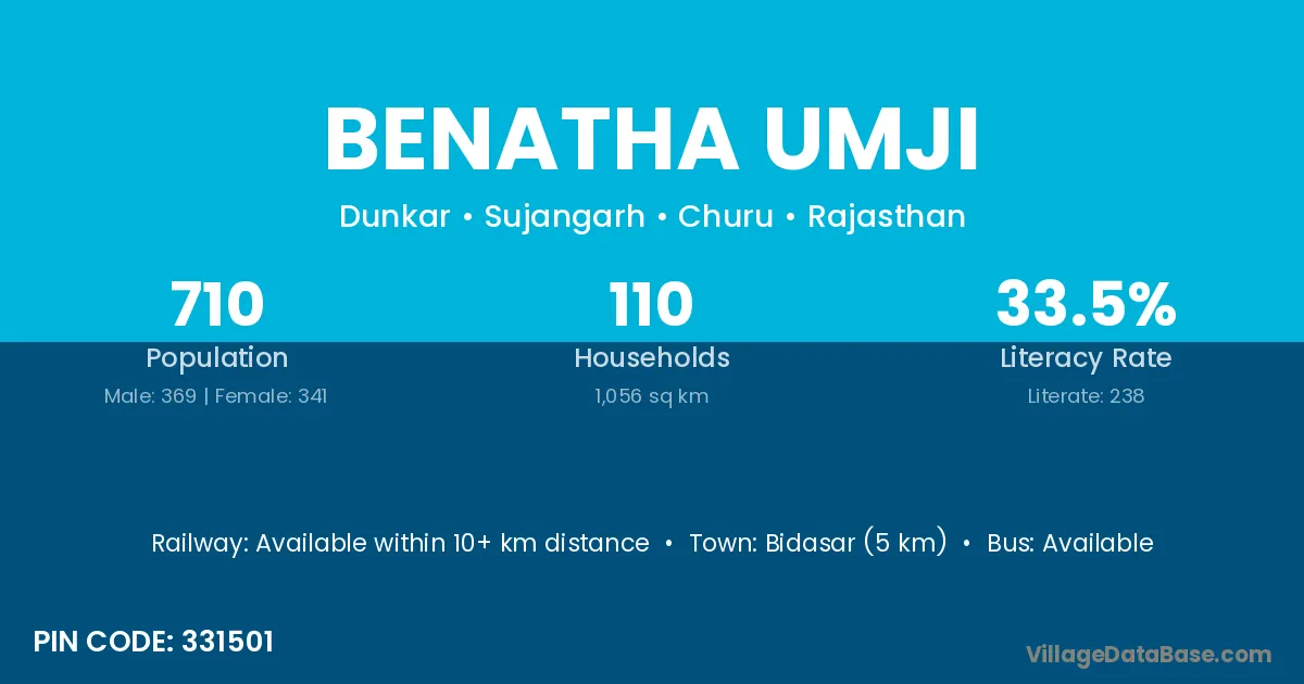 Bidasar (5 km) is the nearest town to Benatha Umji village for major economic activities and is located approximately 5 km away.