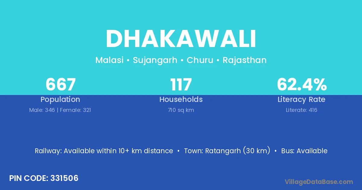 Ratangarh (30 km) is the nearest town to Dhakawali village for major economic activities and is located approximately 30 km away.