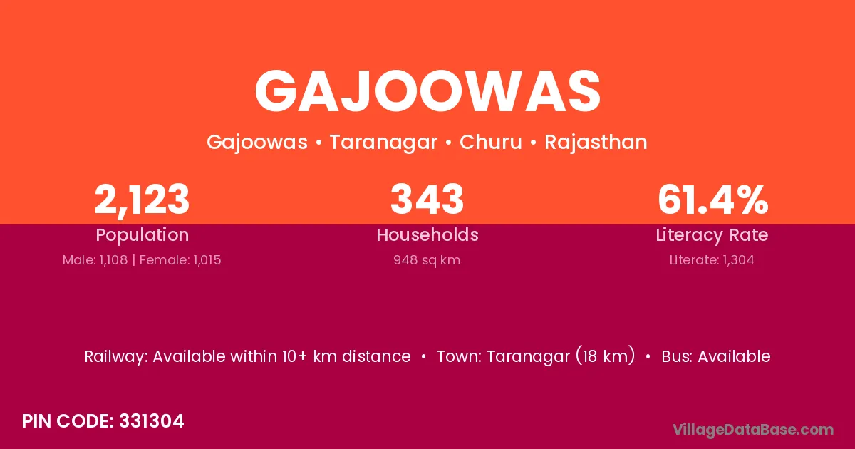 Taranagar (18 km) is the nearest town to Gajoowas village for major economic activities and is located approximately 18 km away.