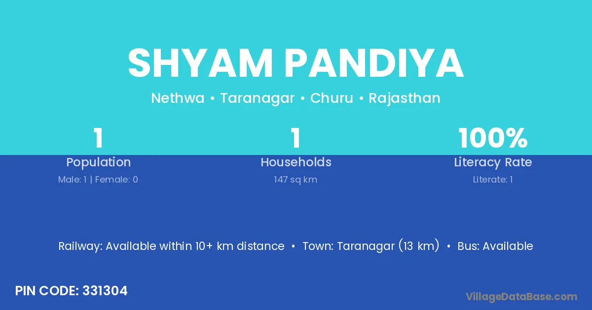 Taranagar (13 km) is the nearest town to Shyam Pandiya village for major economic activities and is located approximately 13 km away.