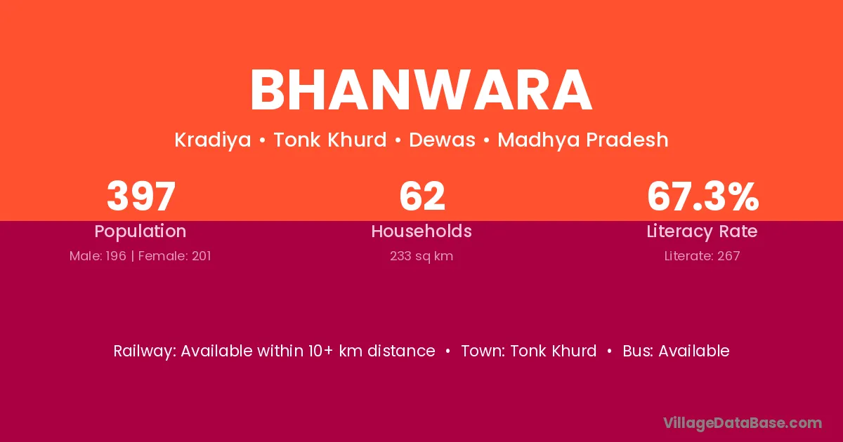 Bandikui (13 km) is the nearest town to Bhanwara village for major economic activities and is located approximately 13 km away.