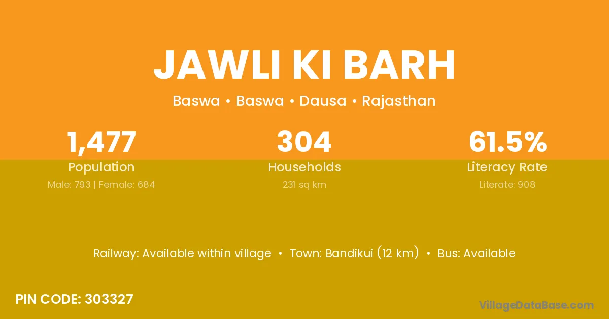 Jawli Ki Barh village has a total population of 1,477 people, of which 793 are males and 684 are females.
