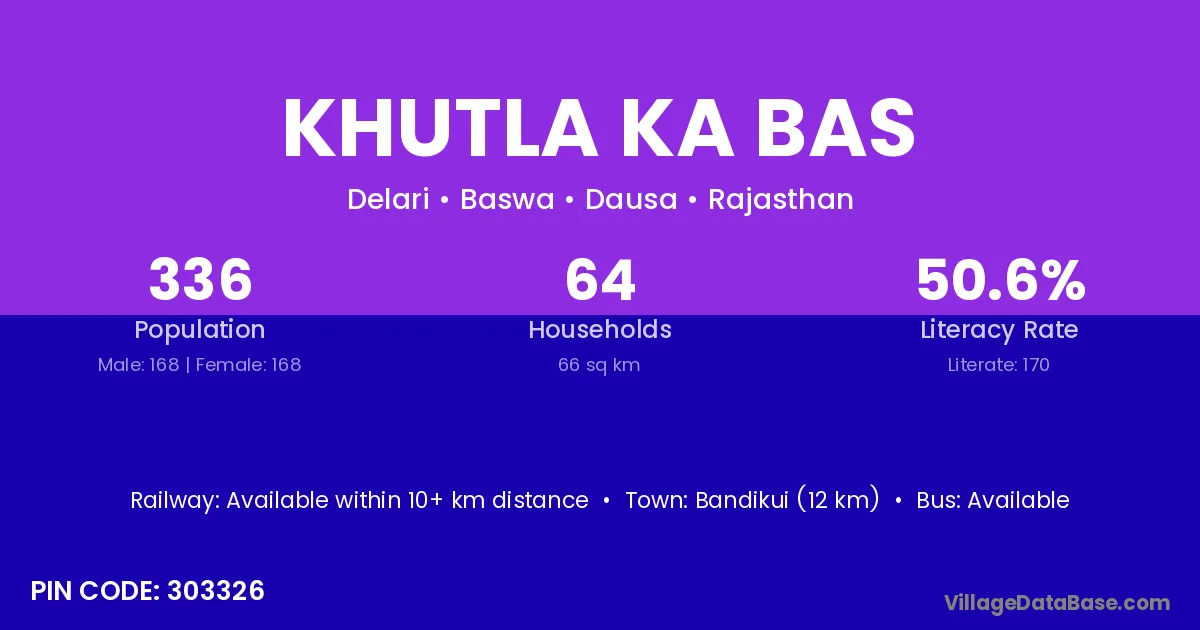 Bandikui (12 km) is the nearest town to Khutla Ka Bas village for major economic activities and is located approximately 12 km away.