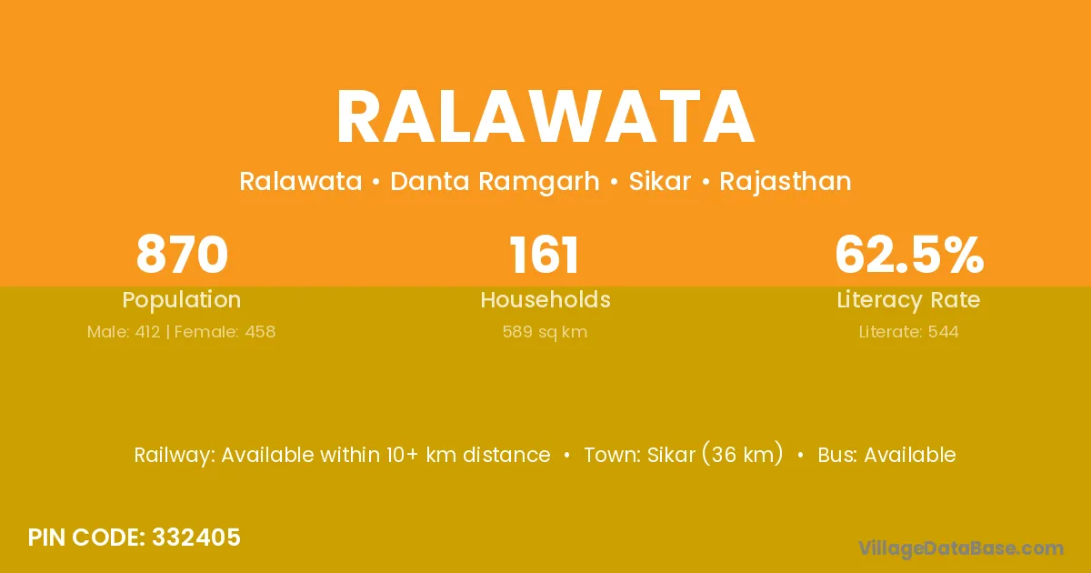 Bandikui (14 km) is the nearest town to Ralawata village for major economic activities and is located approximately 14 km away.