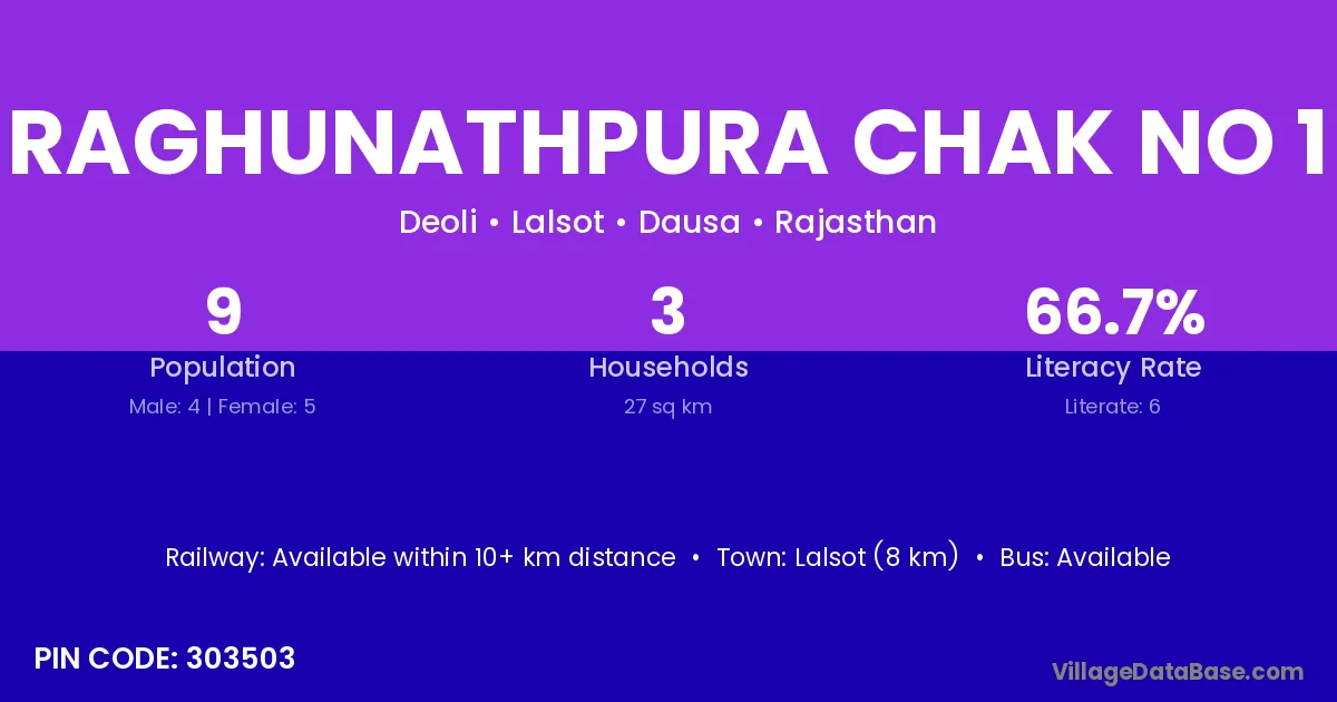 Lalsot (8 km) is the nearest town to Raghunathpura Chak No 1 village for major economic activities and is located approximately 8 km away.