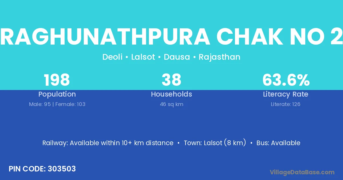 Lalsot (8 km) is the nearest town to Raghunathpura Chak No 2 village for major economic activities and is located approximately 8 km away.