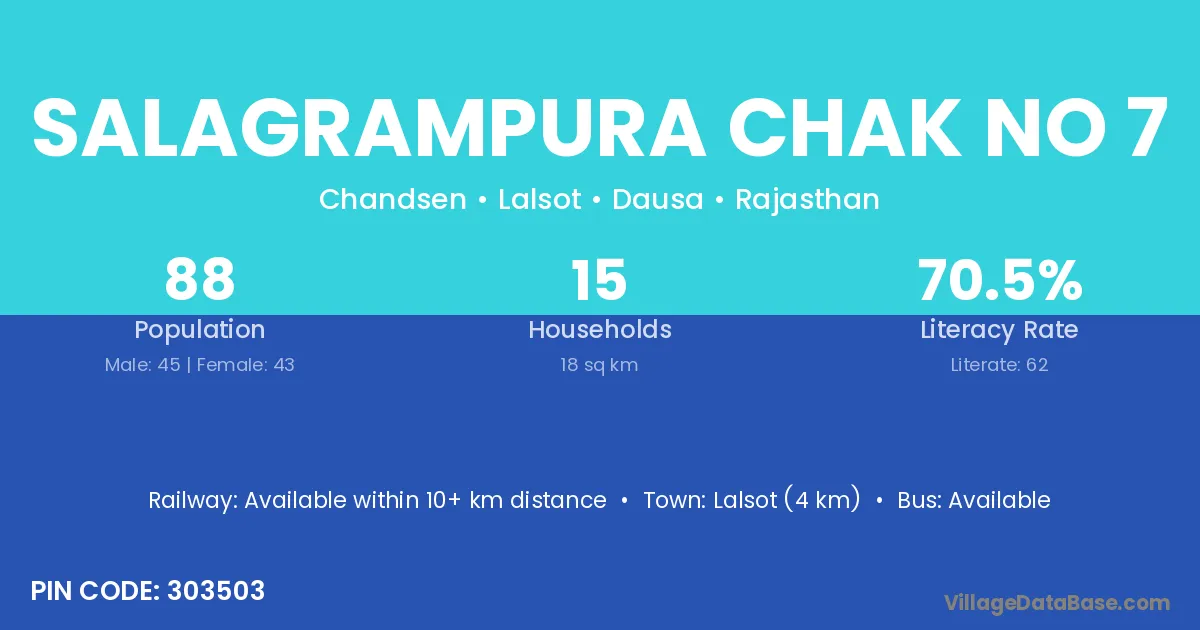 Lalsot (4 km) is the nearest town to Salagrampura Chak No 7 village for major economic activities and is located approximately 4 km away.