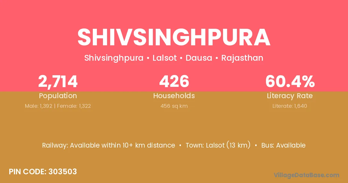 Lalsot (13 km) is the nearest town to Shivsinghpura village for major economic activities and is located approximately 13 km away.