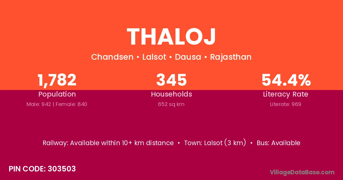 Lalsot (3 km) is the nearest town to Thaloj village for major economic activities and is located approximately 3 km away.