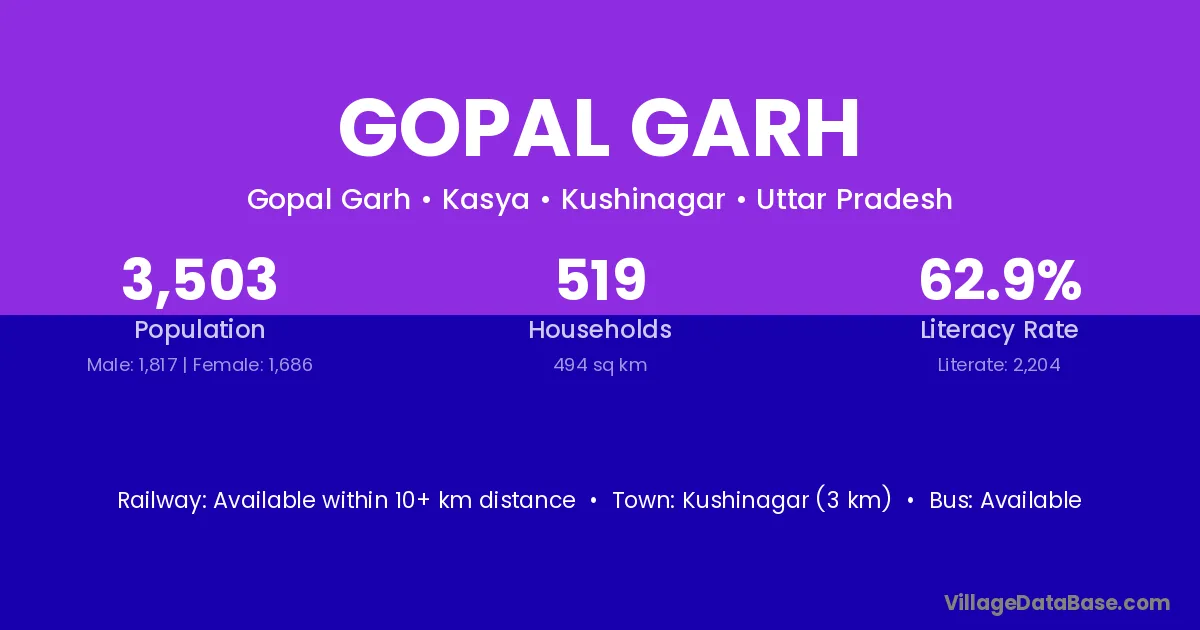 Dausa (70 km) is the nearest town to Gopal Garh village for major economic activities and is located approximately 70 km away.