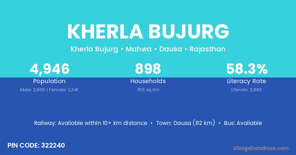 Dausa (82 km) is the nearest town to Kherla Bujurg village for major economic activities and is located approximately 82 km away.