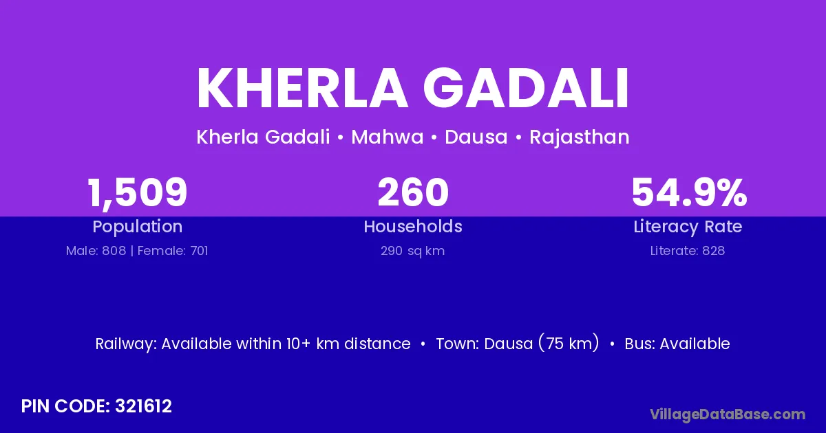Dausa (75 km) is the nearest town to Kherla Gadali village for major economic activities and is located approximately 75 km away.