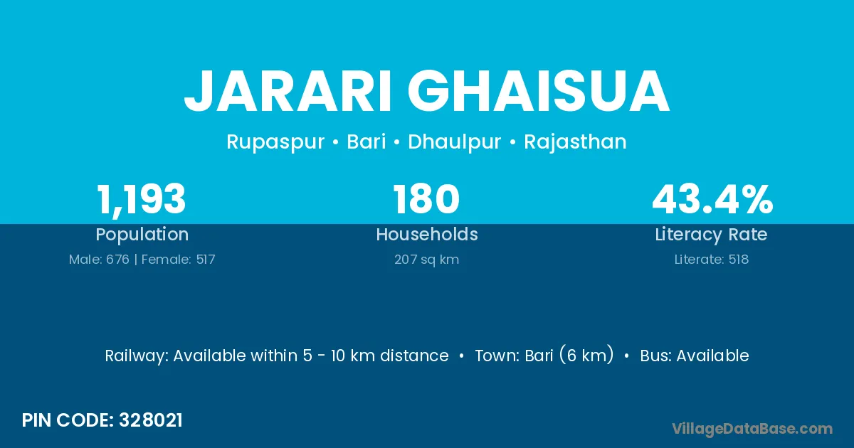 Bari (6 km) is the nearest town to Jarari Ghaisua village for major economic activities and is located approximately 6 km away.