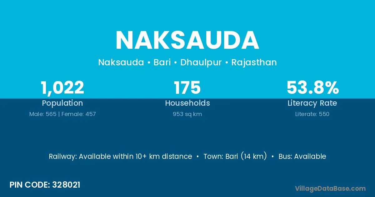 Bari (14 km) is the nearest town to Naksauda village for major economic activities and is located approximately 14 km away.