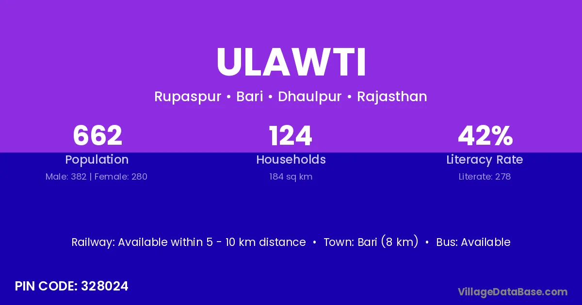 Bari (8 km) is the nearest town to Ulawti village for major economic activities and is located approximately 8 km away.