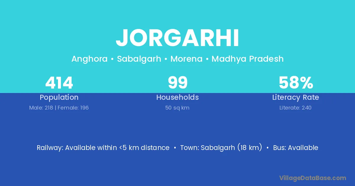 Jorgarhi village has a total population of 407 people, of which 218 are males and 189 are females.