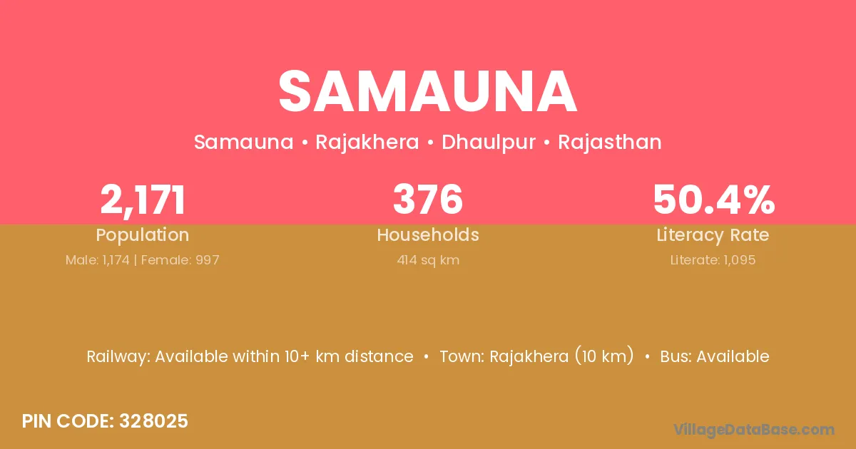 Rajakhera (10 km) is the nearest town to Samauna village for major economic activities and is located approximately 10 km away.