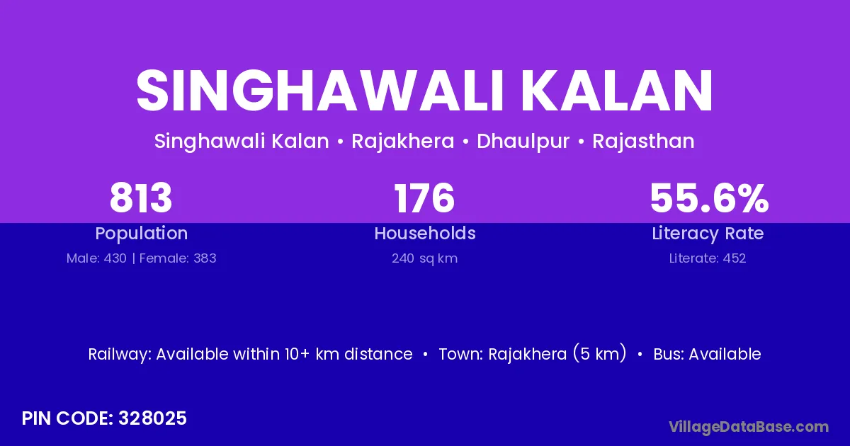 Rajakhera (5 km) is the nearest town to Singhawali Kalan village for major economic activities and is located approximately 5 km away.