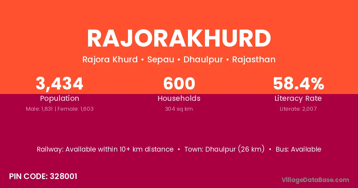 Dhaulpur (26 km) is the nearest town to Rajorakhurd village for major economic activities and is located approximately 26 km away.