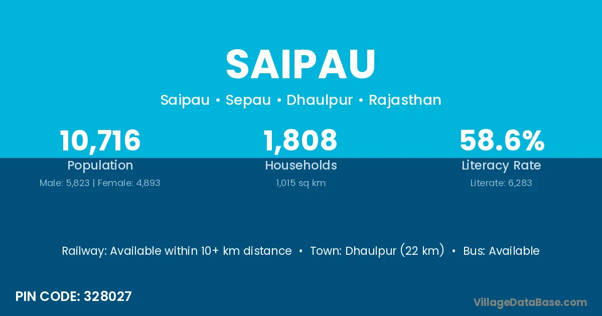Dhaulpur (22 km) is the nearest town to Saipau village for major economic activities and is located approximately 22 km away.