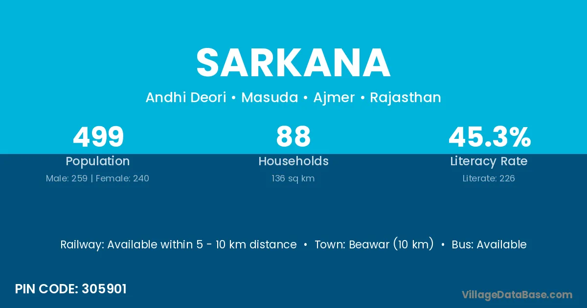 Dhaulpur (21 km) is the nearest town to Sarkana village for major economic activities and is located approximately 21 km away.