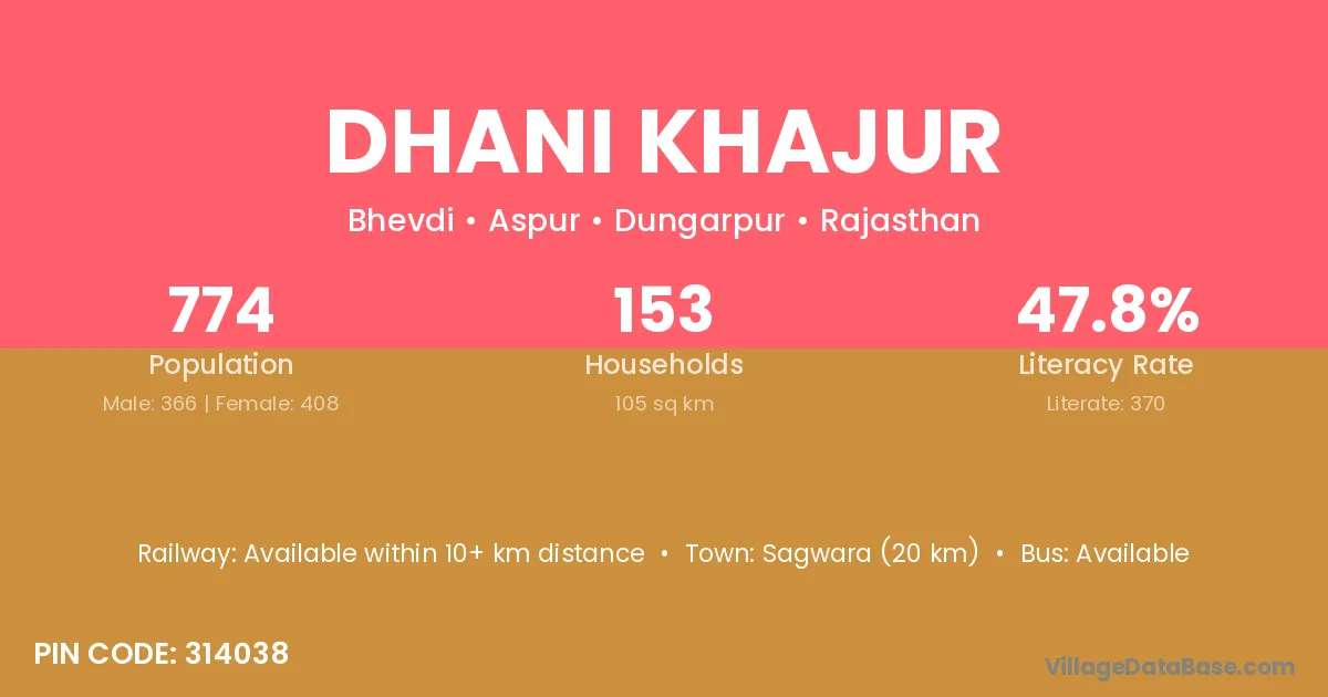 Sagwara (20 km) is the nearest town to Dhani Khajur village for major economic activities and is located approximately 20 km away.
