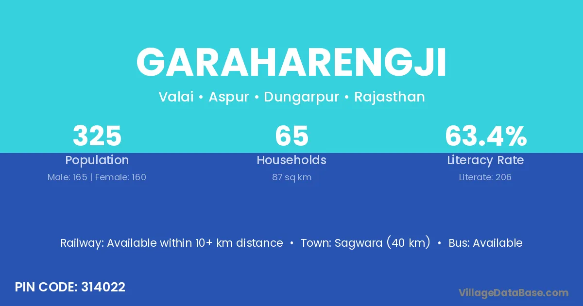 Sagwara (40 km) is the nearest town to Garaharengji village for major economic activities and is located approximately 40 km away.