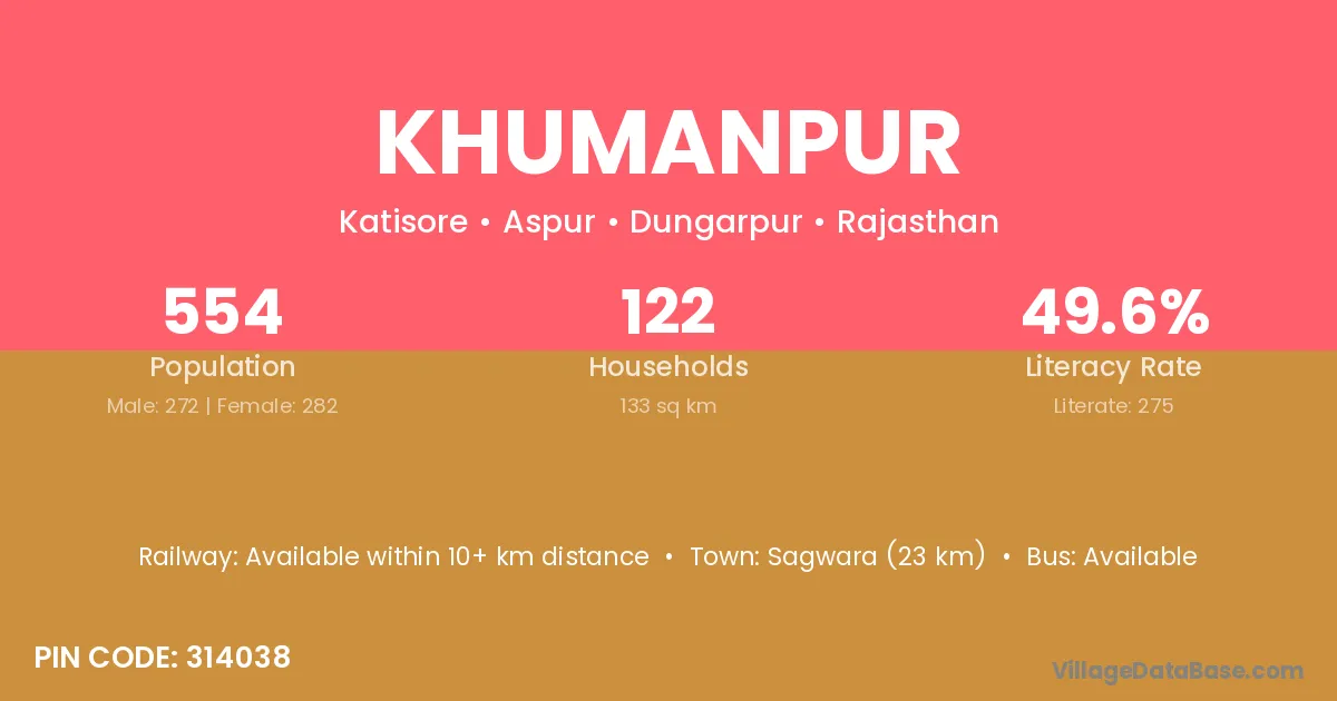 Sagwara (23 km) is the nearest town to Khumanpur village for major economic activities and is located approximately 23 km away.