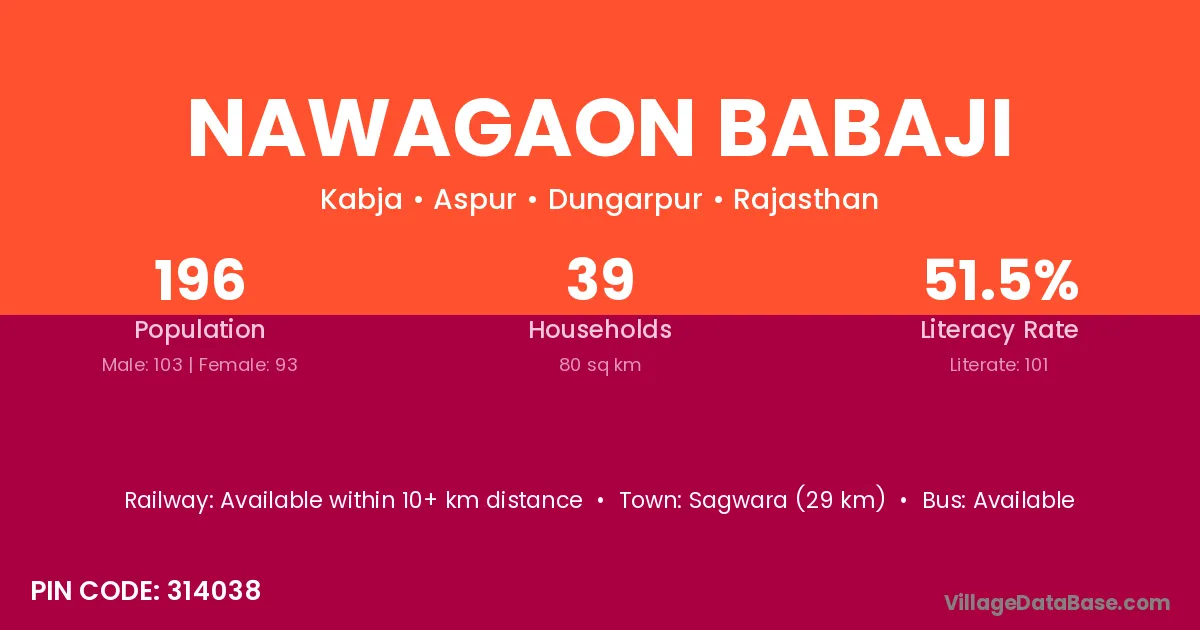 Sagwara (29 km) is the nearest town to Nawagaon Babaji village for major economic activities and is located approximately 29 km away.
