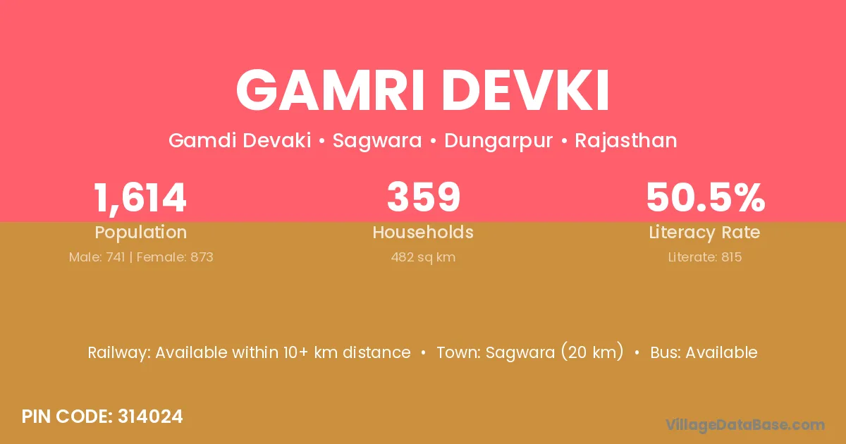 Sagwara (20 km) is the nearest town to Gamri Devki village for major economic activities and is located approximately 20 km away.