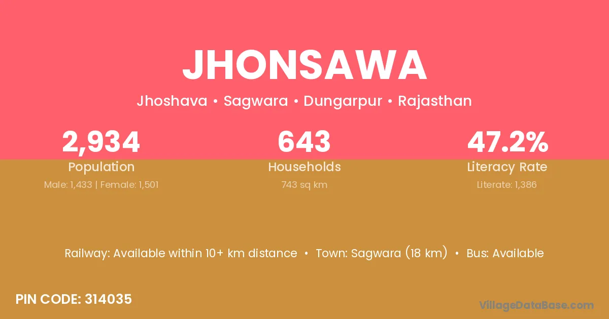 Sagwara (18 km) is the nearest town to Jhonsawa village for major economic activities and is located approximately 18 km away.