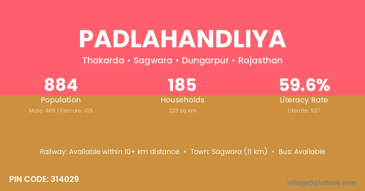 Sagwara (11 km) is the nearest town to Padlahandliya village for major economic activities and is located approximately 11 km away.