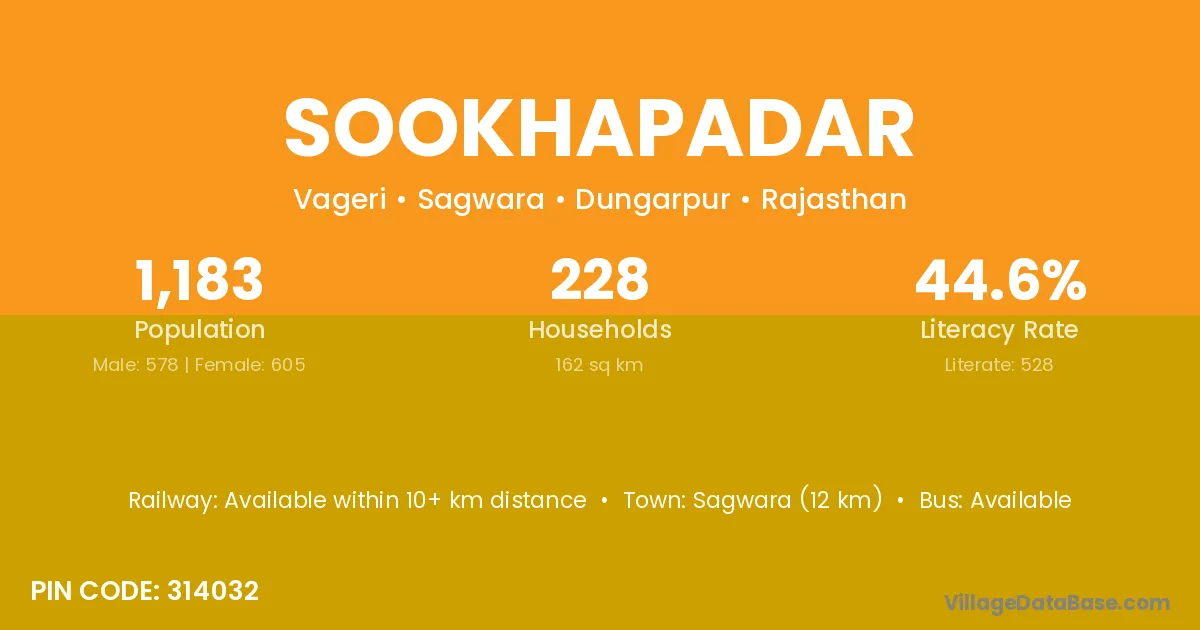 Sagwara (12 km) is the nearest town to Sookhapadar village for major economic activities and is located approximately 12 km away.