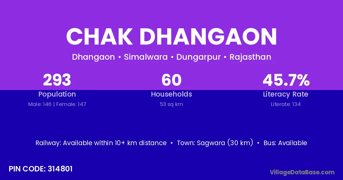 Sagwara (30 km) is the nearest town to Chak Dhangaon village for major economic activities and is located approximately 30 km away.