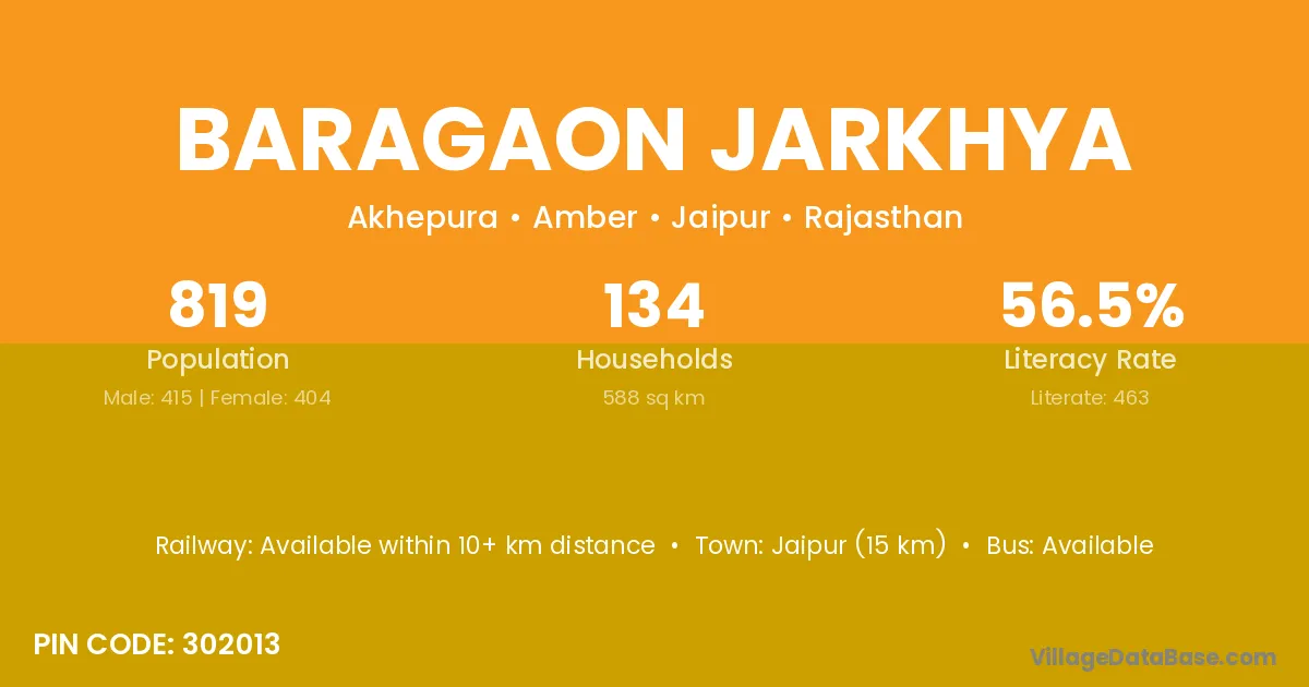 According to Census 2011 information, the village code of Baragaon Jarkhya village is 302013.