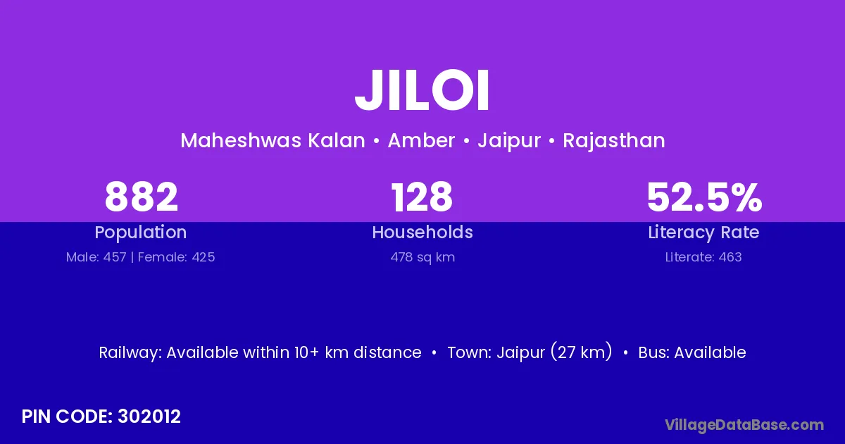 According to Census 2011 information, the village code of Jiloi village is 302012.