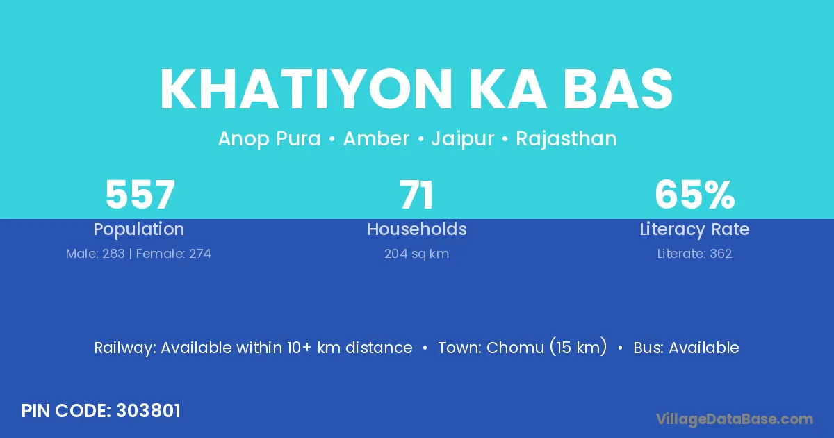 Khatiyon Ka Bas village has a total population of 557 people, of which 283 are males and 274 are females.