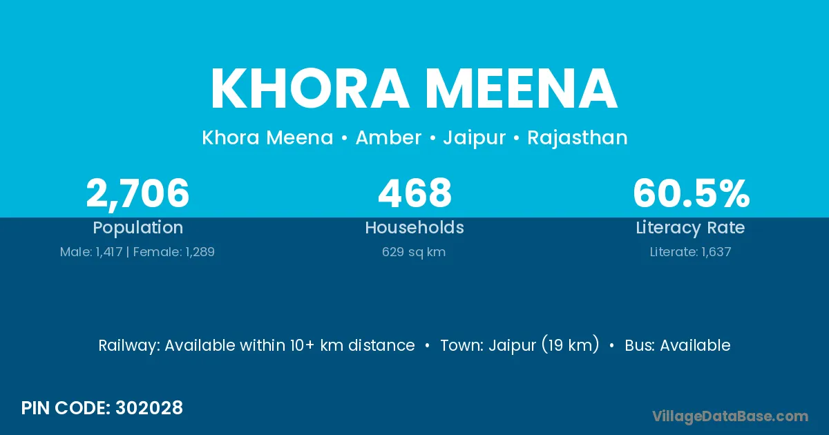 Khora Meena village has a total population of 2,706 people, of which 1,417 are males and 1,289 are females.