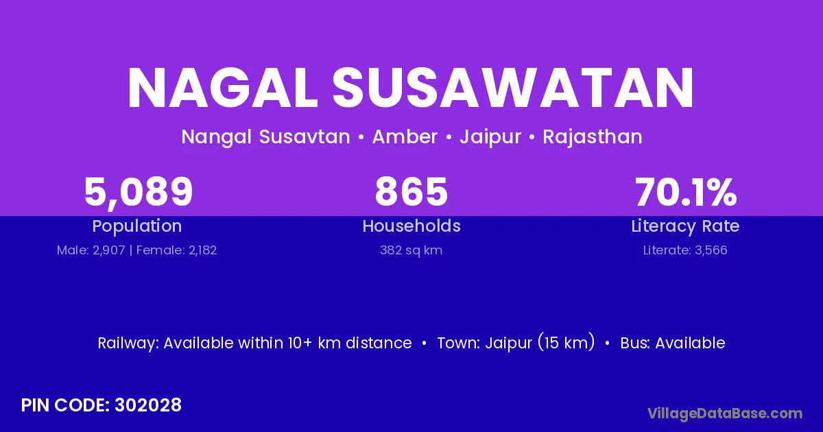 Jaipur (15 km) is the nearest town to Nagal Susawatan village for major economic activities and is located approximately 15 km away.