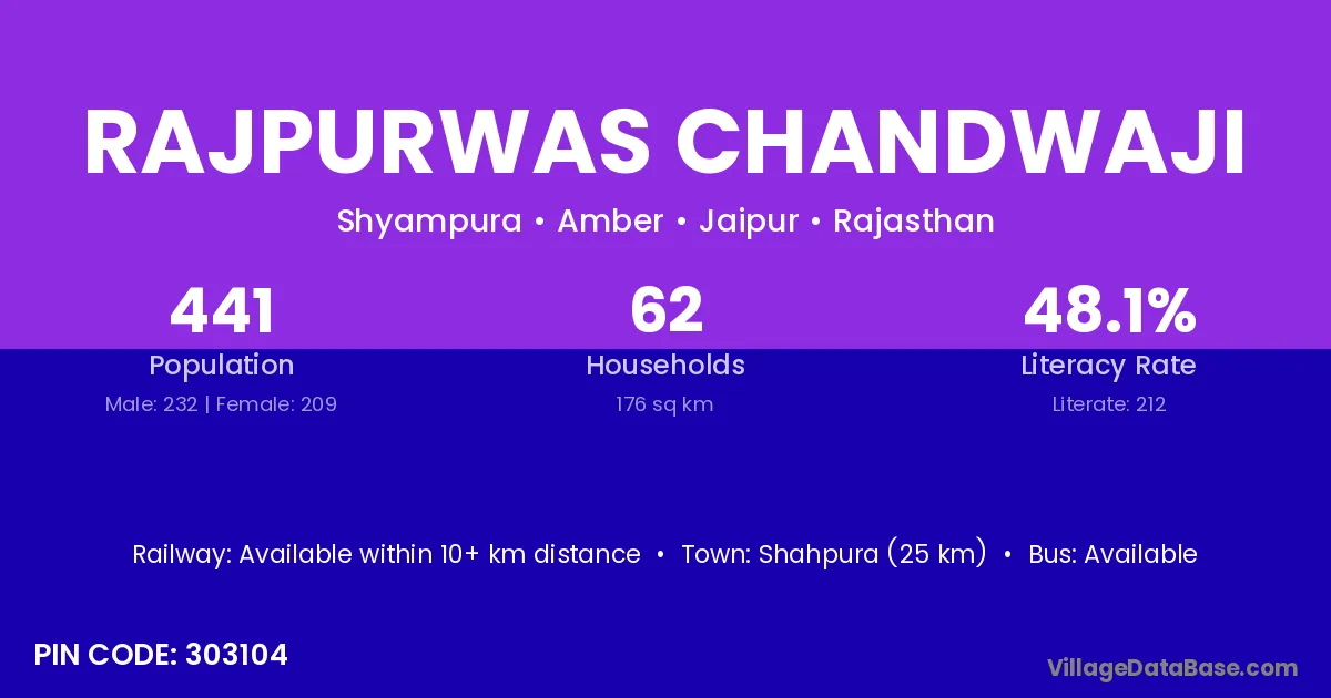 According to Census 2011 information, the village code of Rajpurwas Chandwaji village is 303104.
