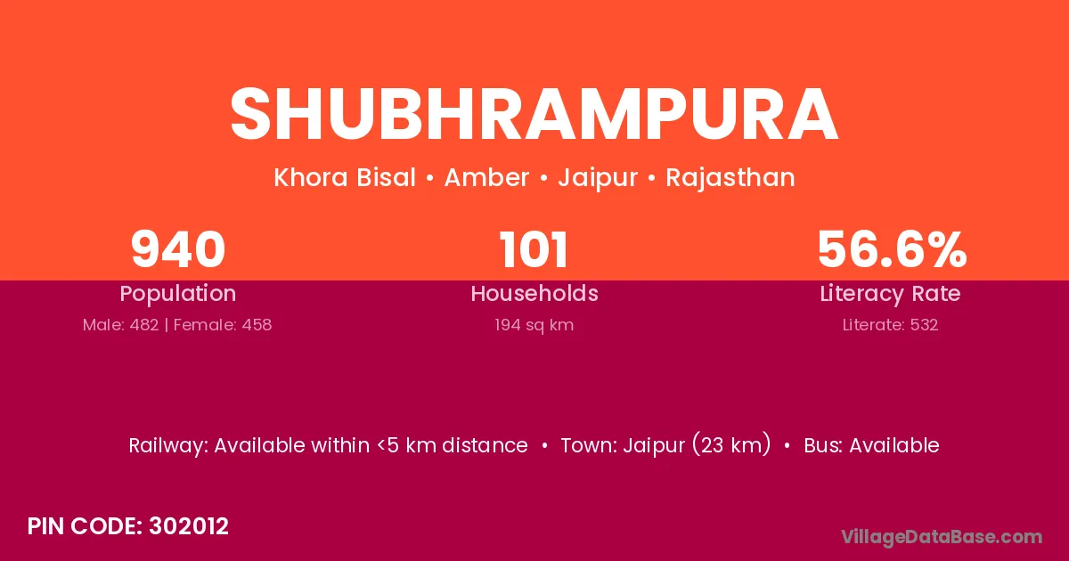 Jaipur (23 km) is the nearest town to Shubhrampura village for major economic activities and is located approximately 23 km away.