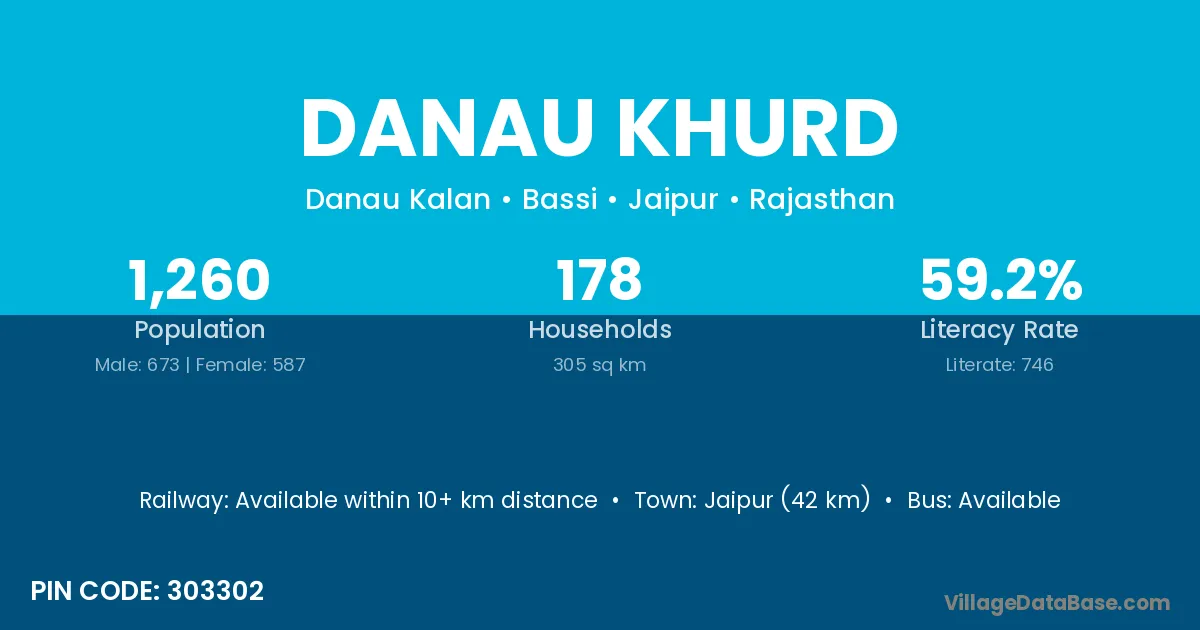 Jaipur (42 km) is the nearest town to Danau Khurd village for major economic activities and is located approximately 42 km away.