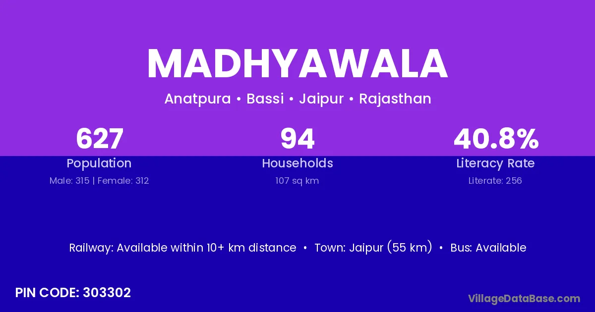 Jaipur (55 km) is the nearest town to Madhyawala village for major economic activities and is located approximately 55 km away.