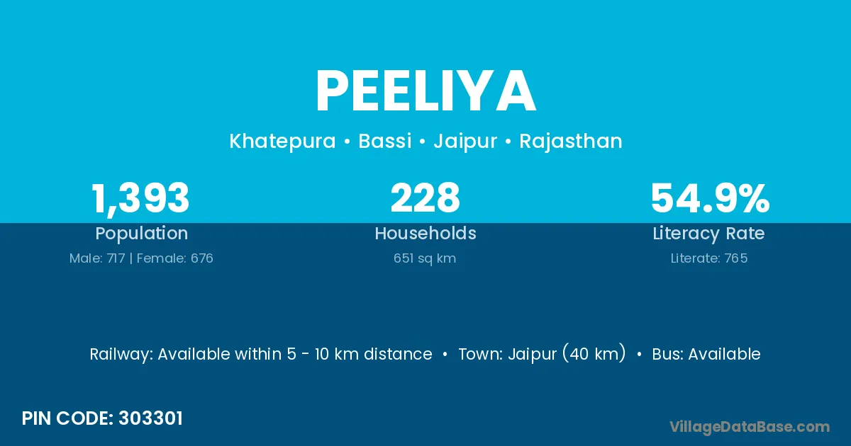 According to Census 2011 information, the village code of Peeliya village is 303301.