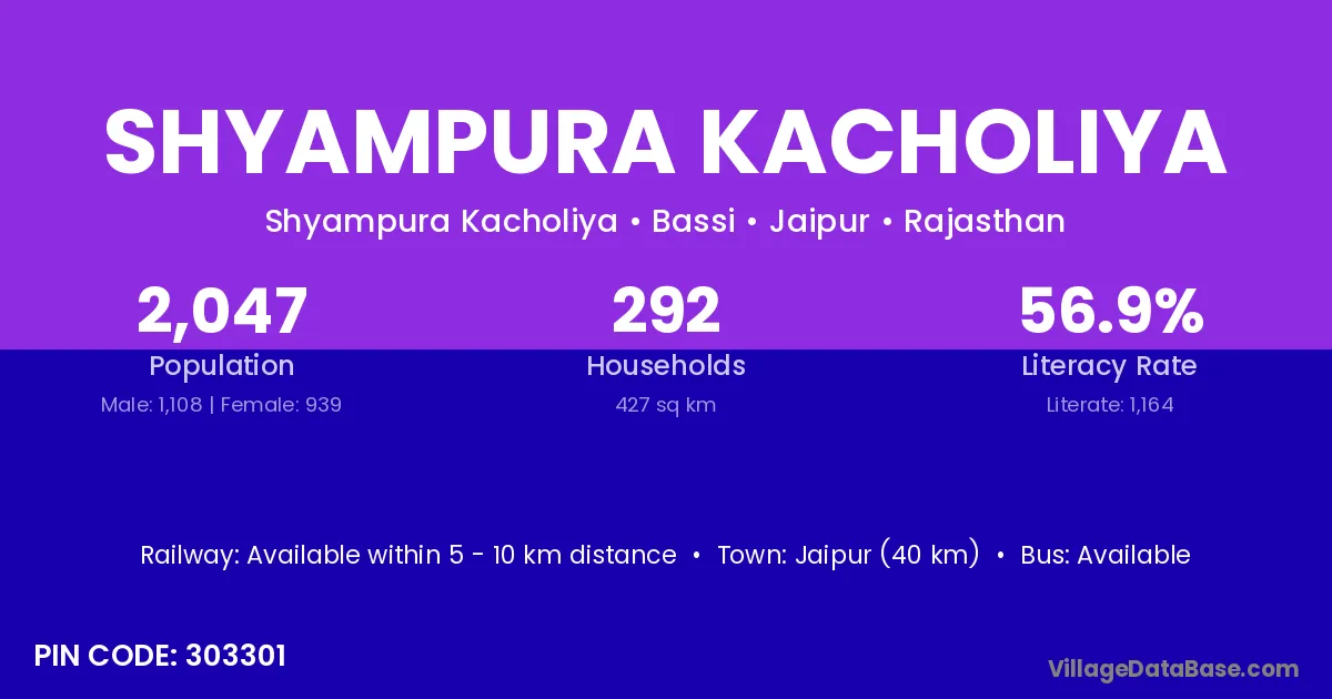 Jaipur (40 km) is the nearest town to Shyampura Kacholiya village for major economic activities and is located approximately 40 km away.