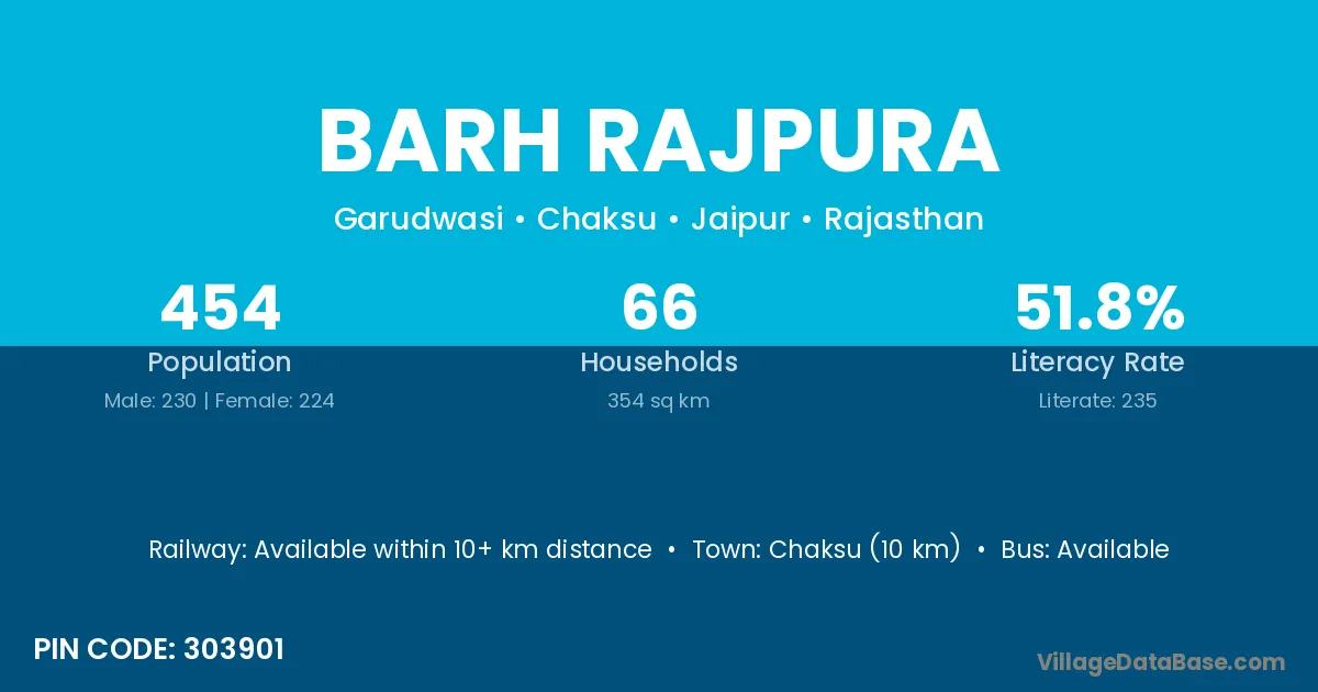 Chaksu (10 km) is the nearest town to Barh Rajpura village for major economic activities and is located approximately 10 km away.